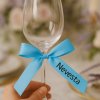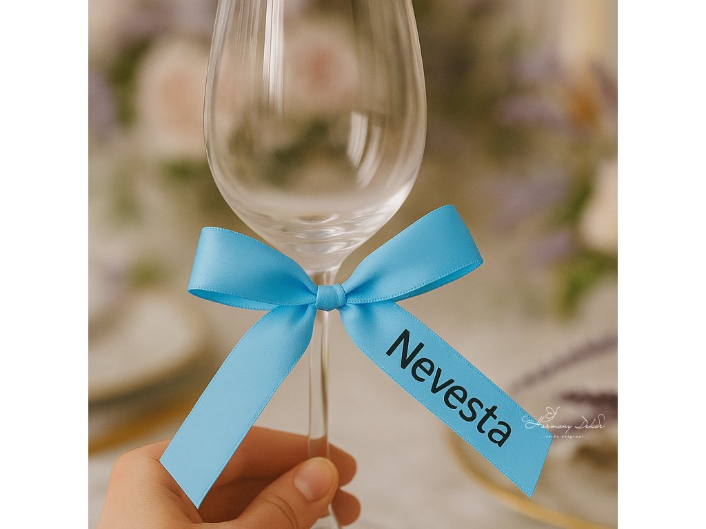 Hľadáte niečo originálne na váš slávnostný stôl? Namiesto klasických papierových menoviek zvoľte elegantnú alternatívu – pohár ozdobený saténovou stužkou so zlatým nápisom.